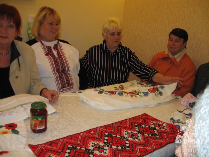 Кожен із академістів клубу «Чорнобривці» приніс із собою цього дня вишиванки: рушники, сорочки, доріжки, наволочки… Пенсіонери розповіли про кожен свій експонат: хто його вишивав, кому дарувався чи призначався. Багато розповідей почули від Карнаухової Л.В., Кравської А.П., Дем’яненко Т.А. та Хоменко Л.В.