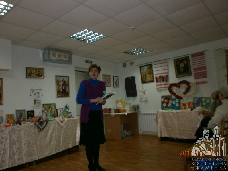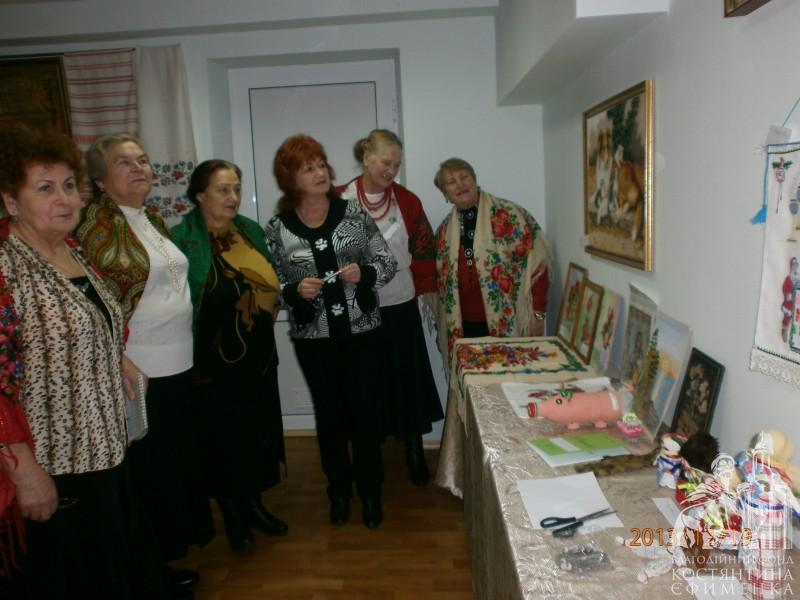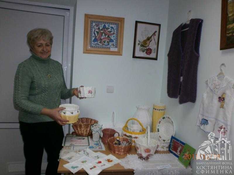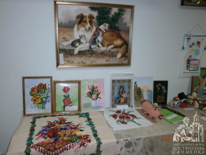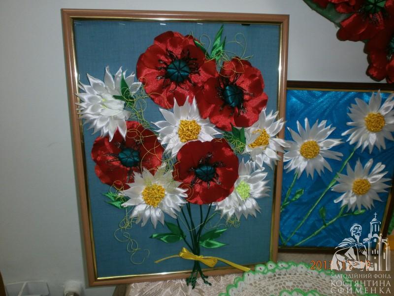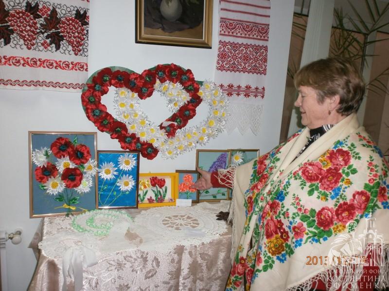І вишивки стрічками Ольги Сиволоцької, і вишиті хрестиком і бісером картини Н. Легкодух, Н. Я. Левченко, Марії Габададзе, незрівнянні рушники і серветки Людмили Левченко, в’язані речі М. Скалиги, казкові квіти із шкіри Лідії Маніної, чудо-прикраси Л. Болобан, ляльки-мотанки Л. Гирявець, вироби із старих газет зроблені дуже цікавим і, як стверджує майстриня І. Гуральнк, простим способом і ще, і ще багато чого нас вразили до глибини душі, порадували й подивували одночасно.