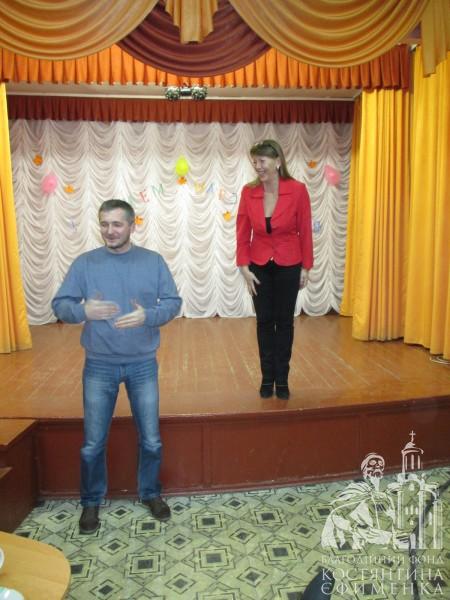 Свято обіцяло бути цікавим, зважаючи на велику кількість присутніх. Все розпочалося з теплих слів і привітань на адресу іменинників, які були презентовані у вигляді художніх номерів та постановок. Першою привітала Тетяна Ковальська піснею у жестовому виконанні «Как молоды мы были», потім почергово свої номери демонстрували веселі клоуни у сценках «Чемодан» та «Стакан води». Глядачі були в захваті від гри акторів, особливо аплодували майстерності ще юного Михайла Нестеренка, який тільки починає свої перші кроки в художній самодіяльності.