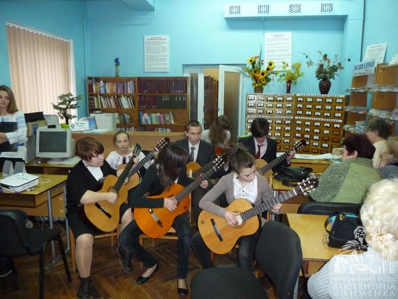 У клубах «Водограй» (Міська центральна бібліотека) і «Сузір’я» (бібліотека-філія № 9, що на Критому ринку) академісти взяли участь у літературно-музичних посиденьках, які підготували для них учні гімназії №1 – учасники театральної студії «Пролог» (керівник – Тетяна Яковенко).