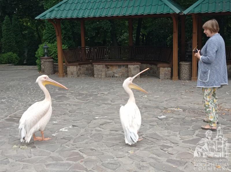 Дуже цікавими були примати, особливо гібон, який співає так, що сирени просто відпочивають на його фоні. Дізналися про характер і звички диких кішечок: від лагідних сервалів до грізних левів та пантер. Цікаво було подивитися на сову та пугача. Хоч їхня активність нічна, як відомо, але вдень вони теж бадьорі та з цікавістю на нас дивилися. А скільки птахів у зоопарку! Недаремно він має назву «Золотий фазан». Кілька видів павичів, незвичайні, червонокнижні журавлі, особливо цікавий - з вінцем на голові. А ще маса різних курочок, фазанів, султанок, цесарок, папуг, качок, гусей, чорних та білих лебедів! Між іншим, не лише пелікани вільно гуляють парком, а й деякі павичі та лелеки.