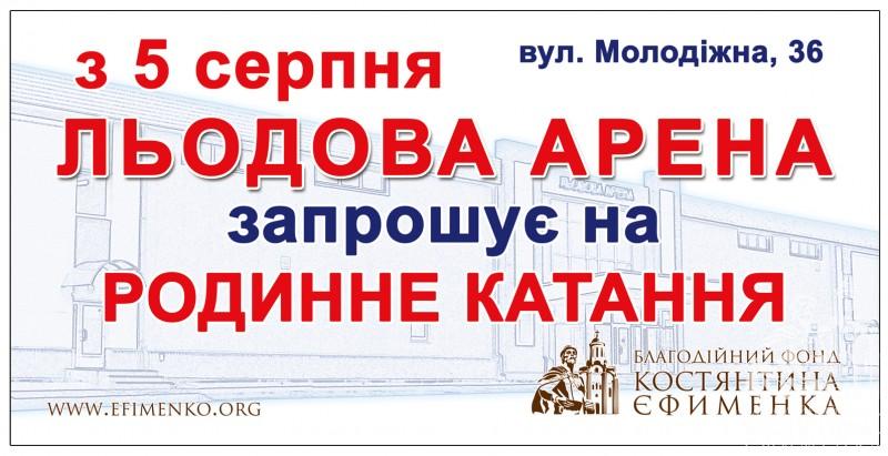 Уже з 5 серпня всі охочі можуть завітати до Льодової арени на родинне катання.Арена працюватиме з 10:00 до 22:00.