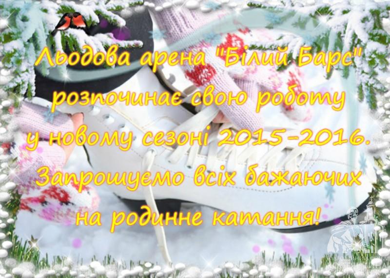 Льодова арена «Білий Барс» розпочинає свою роботу у новому сезоні 2015-2016. Запрошуємо всіх бажаючих на родинне катання!