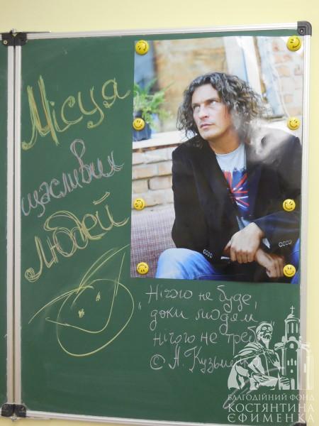 Цього тижня відбулися сороковини, як Андрій Кузьменко, лідер гурту «Скрябін», пішов від нас в інший світ. Майже півсотні членів клубу «Серпанок» зібралися, щоб вшанувати пам’ять співака Андрія Кузьменка, але у пам'яті своїх шанувальників він залишиться веселим і невгамовним Кузьмою, простим і веселим, не фальшивим і не лукавим, українцем — щирим і справжнім, патріотом і генієм. Тому, готуючись до засідання, ми навмисне відмовилися від формату заходу «вечір пам'яті», а влаштували вечір спогадів під назвою однієї з пісень виконавця «Місця щасливих людей», навіть фото роздрукували кольорове, бо «життя красиве, коли кольорове…». Ми не готували сухі автобіографічні дані, тим паче, що після того «чорного» понеділка 2 лютого їх описали всі можливі ЗМІ та показали всі телеканали країни. Це була розповідь про концерти Скрябіна, на яких довелося побувати, і не тільки… На зустрічі були використані матеріали з особистого архіву: фото, відео, книги, диски, листівки, автографи та інші пам’ятні речі.