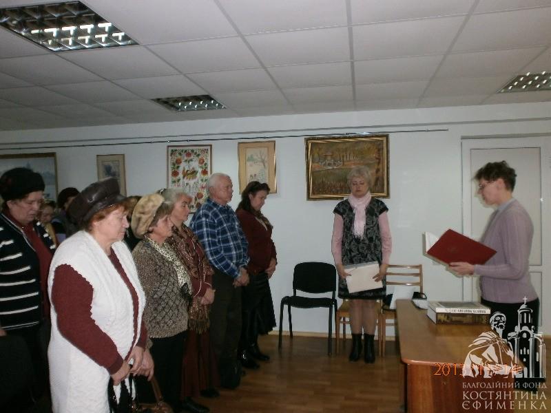 Голодомор. Неможливо обійти цю болючу, страшну сторінку нашої історії. Вечір пам’яті жертв незбагненної трагедії нашого народу, який відбувся в клубах «Журавка» і «Чарівна мить», не залишив нікого байдужим. Ганна Нагорна зробила дуже цікаву підбірку матеріалів про цю трагедію українського народу. Присутні слухали її з великою увагою. Марія Постоєва й Ірина Гуральник прочитали вірші на цю тему та документальні свідчення.