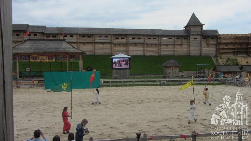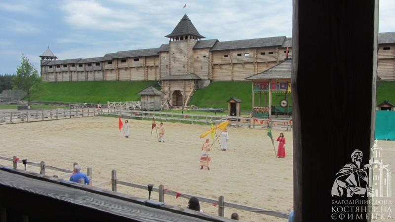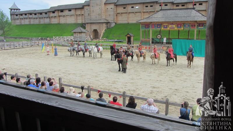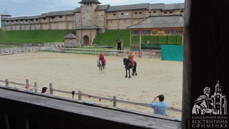 Щорічно на арені проводяться фестивалі, ярмарки, спортивні змагання. Нам пощастило побачити змагання лучників на конях. На початку вистави на арену виїхав сам князь Володимир на могутньому коні, привітав присутніх і зачитав Грамоту - дозвіл розпочати змагання.