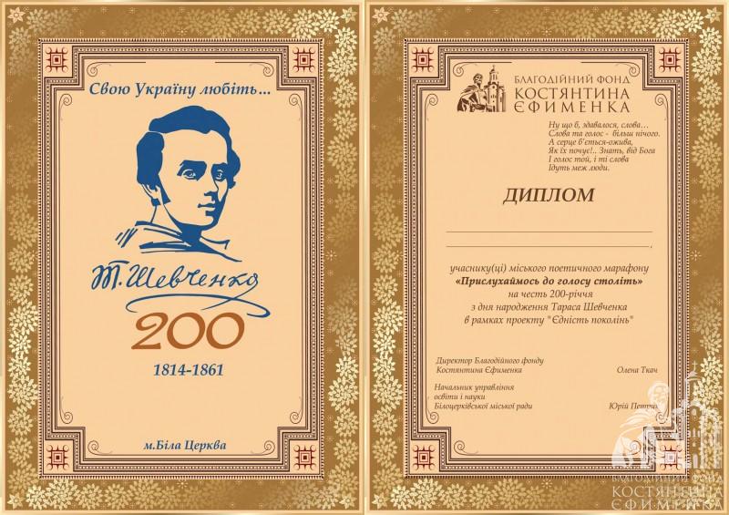 Усім 137 учасникам Шевченківського поетичного марафону директор Благодійного фонду Олена Ткач вручила пам’ятні дипломи.