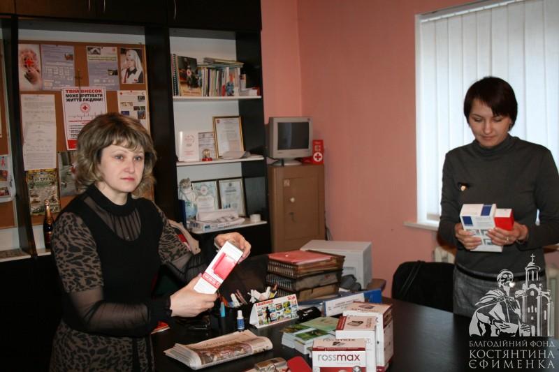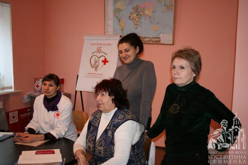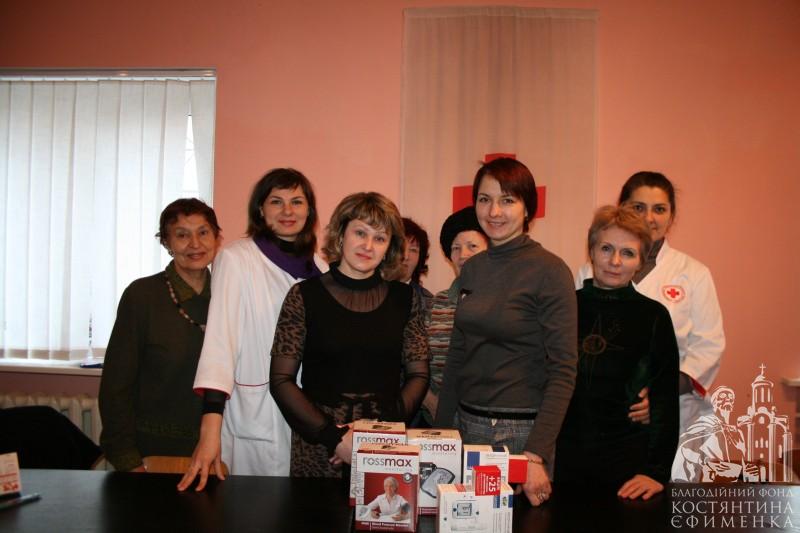 Патронажна служба Білоцерківської міської організації Товариства Червоного Хреста з метою покращення надання допомоги, виявлення та обліку найбільш вразливих верств населення проводить свою роботу в тісній взаємодії з установами охорони здоров’я, соціального захисту населення. Тісно співпрацює наша організація і з Благодійним фондом Костянтина Єфименка, пріоритет роботи якого - турбота про людей поважного віку. Ось і 24 лютого 2014 року директор фонду Олена Ткач передала в міську організацію Червоного Хреста тонометри та глюкометри, що допоможе сестрам милосердя більш якісно обслуговувати своїх підопічних.