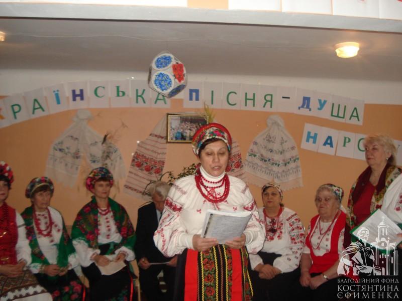 Один із таких заходів ми присвятили українській пісні і назвали його «Українська пісня – душа народу». На свято зібралося дуже багато людей. Прозвучало більше як 20 пісень, які розкрили історію української пісні.