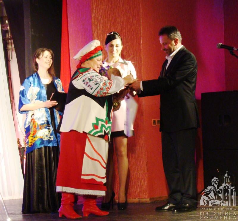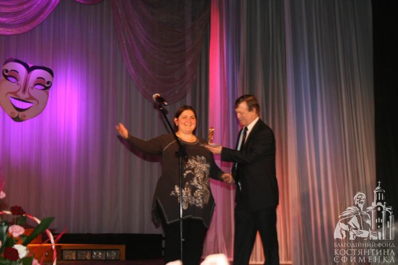 Та ось розпочалася хвилююча церемонія вручення щорічної театральної премії «Браво», яка вшосте знайшла своїх володарів! Олені Ткач, директору Благодійного фонду, випала честь вручити грошову премію і статуетку Максиму Цедзінському (за роль ТоніКрауна у виставі «Так закінчилосяліто»)у номінації «Краща чоловіча роль другого плану». Приз глядацьких симпатій вручив заслуженій артистці України Лідії Дяченко директор ТОВ «Білоцерківський завод «Трібо» Павло Іщенко.