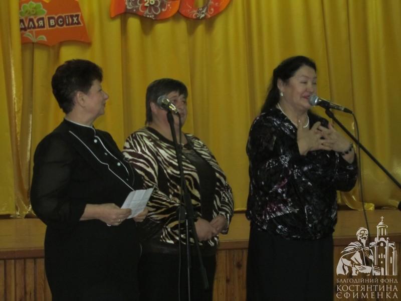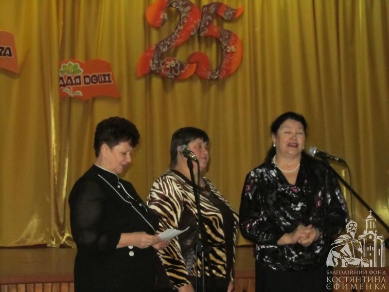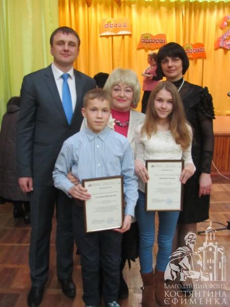 Від імені Благодійного фонду Костянтина Єфименка виступив Євгеній Сінчук, привітавши зі святом всіх присутніх, серед яких були вчителі, учні, батьки, ветерани праці та люди, які пов’язані з діяльністю школи-ювілярки. Як підтвердження напрямку підтримки Фондом талановитої молоді, грамоти, одноразову стипендії та подарунки були вручені двом учням школи за здобутки в образотворчому мистецтві – Олені Левченко, 9-а клас, Владиславу Семенову, 6-а клас.
