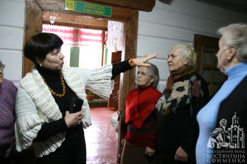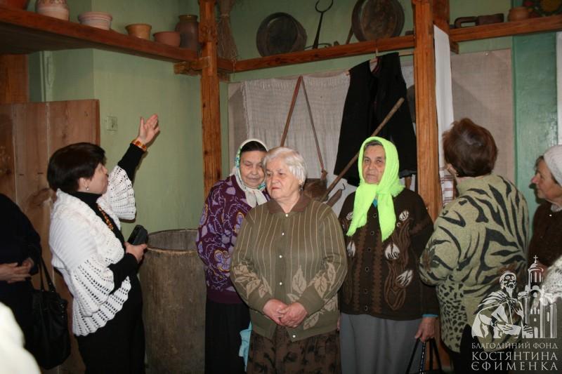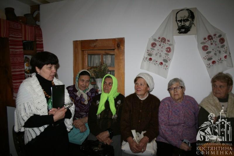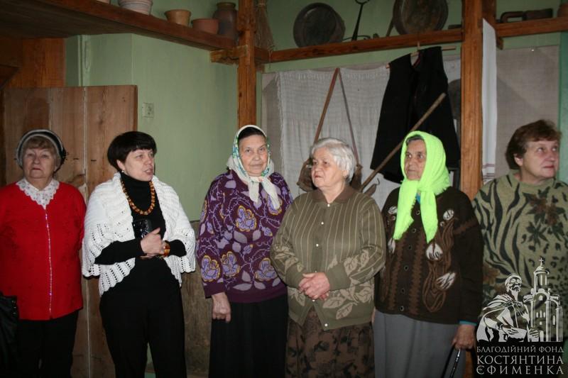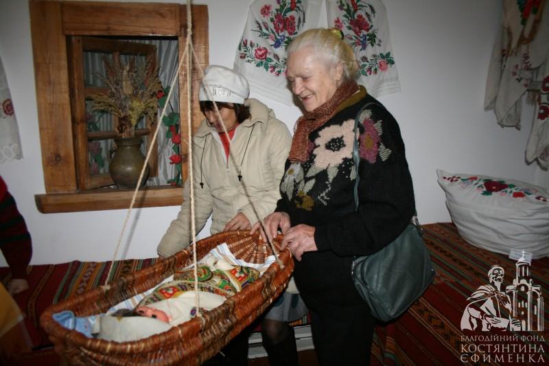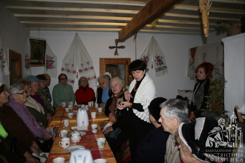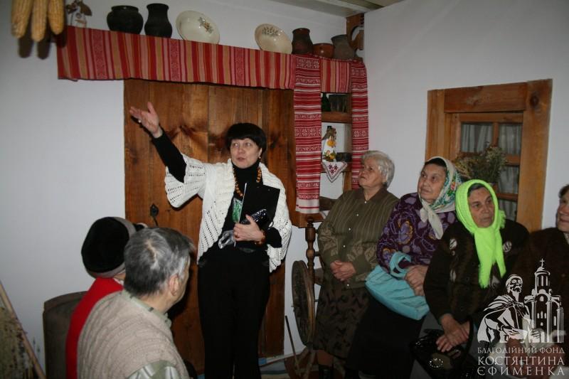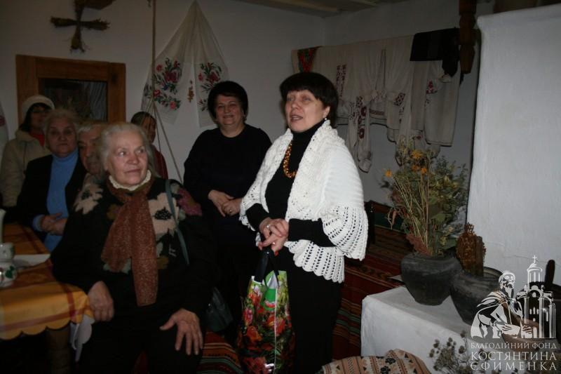 Особливо сподобалась академістам розповідь у самій світлиці про селянську хату кінця ХІХ початку ХХ століття. Відвідувачі потрапили начебто у своє дитинство. Зворушливо слухали розповідь про піч, піл, жердку, образи, неодноразово доповнювали екскурсовода своїми життєвими спогадами. Тому зустріч видалася щирою, теплою та відвертою. Були проведені конкурси на кращу колядку та щедрівку, колисанку, зав’язування хустки, а також напередодні свята згадали українські різдвяні страви.